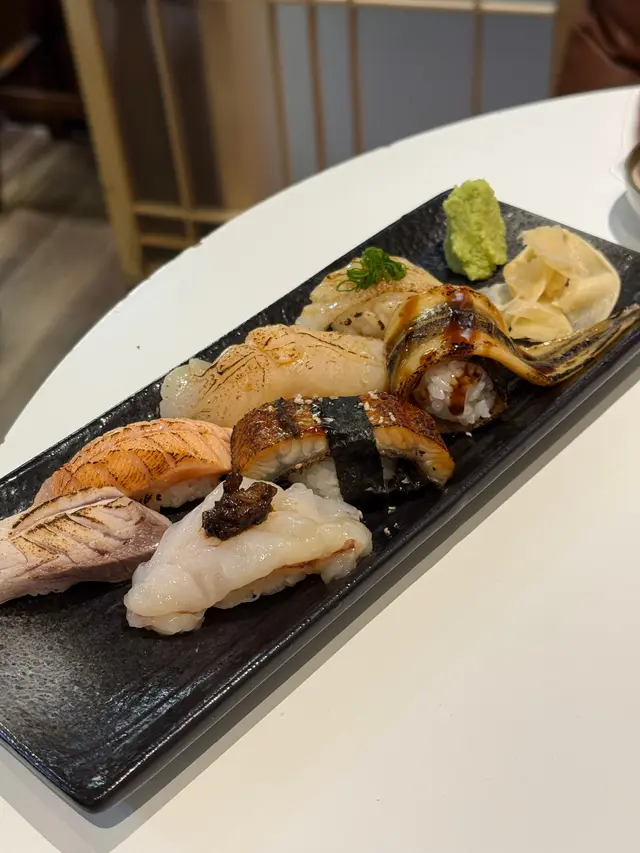 最驚喜係火炙壽司盛盒🔥: ▪️鰻魚同原條海鰻經過火炙後更加帶出魚油香,入口即化~ ▪️赤蝦上面竟然有點蝦膏!咸鮮味濃,真係一試難忘! ▪️每件壽司飯量剛好,醋飯酸度適中,同魚生配合得天衣無縫~