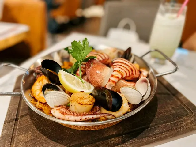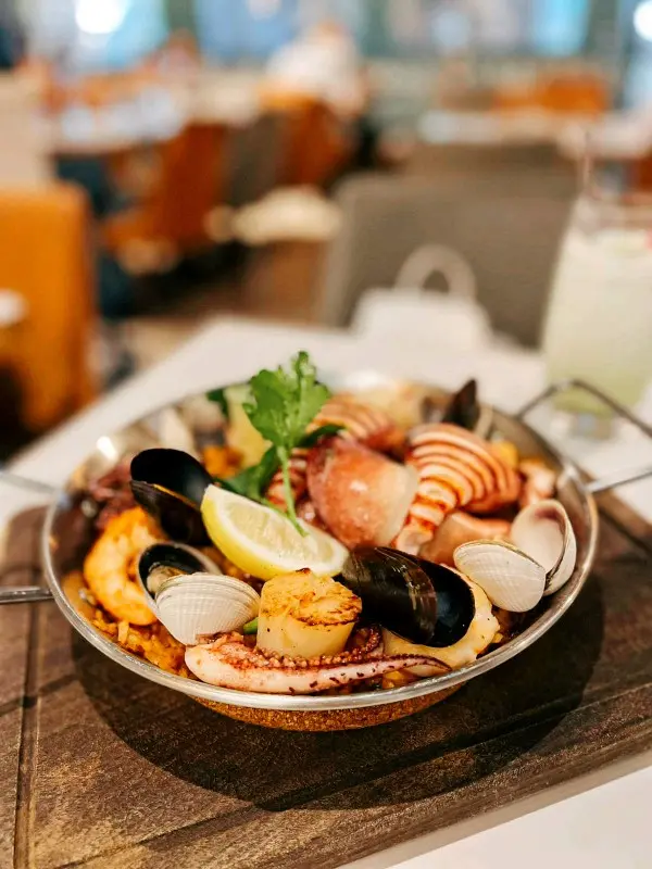 西班牙燉飯喺餐廳嘅signature, 我哋就當然要點嚟試下啦。 本身都擔心過份量會唔會唔夠, 但二人分量絕對夠三個人食, 跟返上面加滿咗大量嘅海鮮, 如魷魚、帶子、海蝦、青口等,非常豐富。 我自己就覺得個燉飯煮得稍為淋咗啲, 但係我都幾鍾意佢喺入面加咗西班牙臘腸,十分惹味。