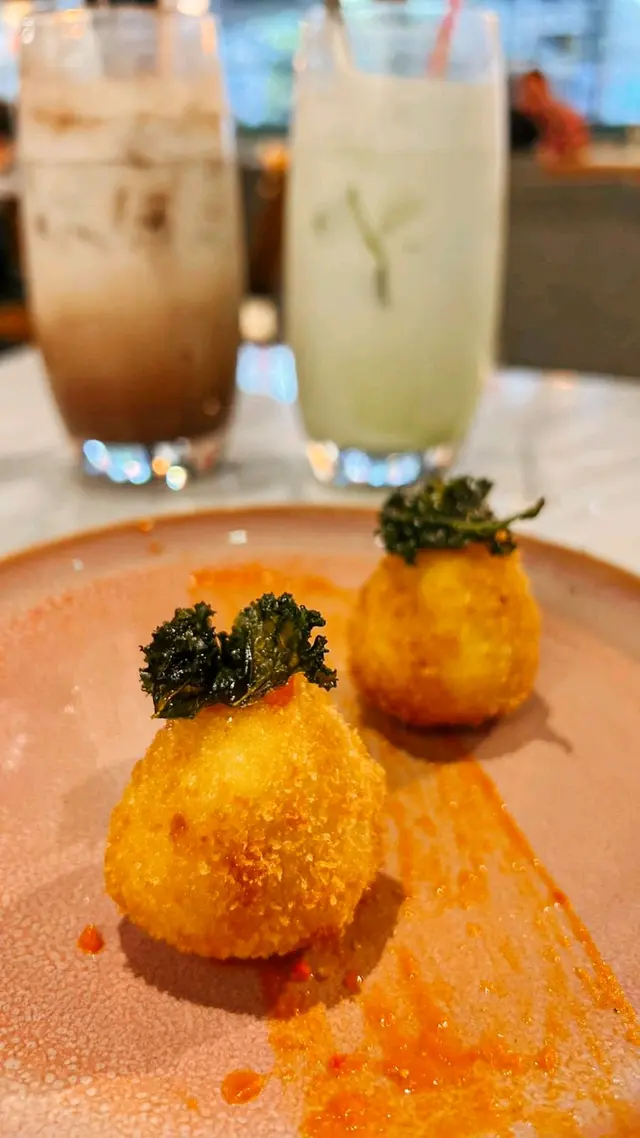 餐廳有多款唔同嘅tapas可以揀, 價錢都唔算貴, 我哋就嚟揀咗兩款廚師推介嘅試下。 呢款黑毛豬火腿可樂餅新鮮炸起,口感香脆,入面有忌廉醬同火腿粒,味道唔錯。