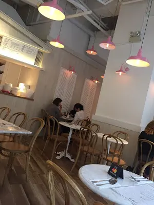 餐廳裝潢是一般咖啡店的格局,粉彩繪牆壁,粉紅色的燈罩,淺白色系的配套,感覺年輕,並帶點女性化。