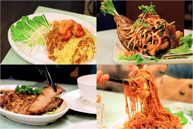 點了蛋包鮮蝦金邊粉$70, 泰皇秘制鰂魚沙津$168及燒豬頸肉$72。