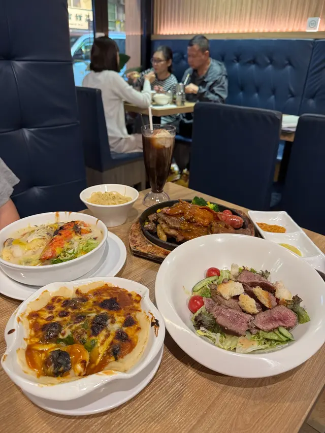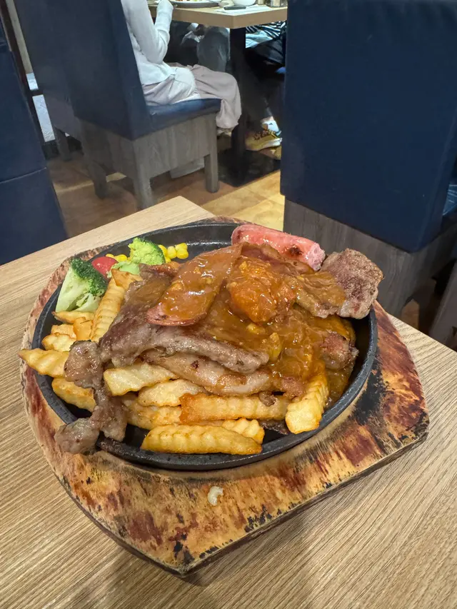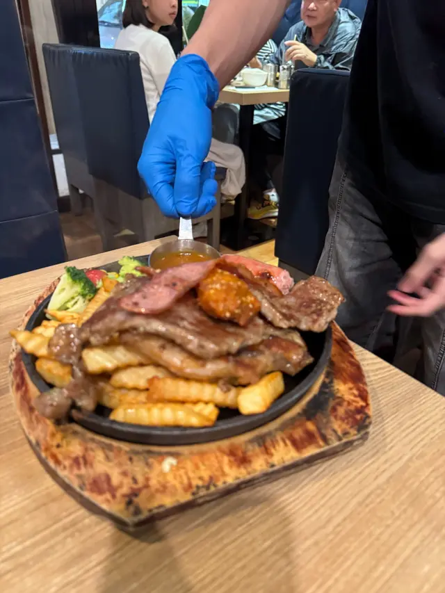 懷舊鐵板餐選擇多,美式雜扒份量十足,鐵板吱吱聲加上油香四溢,最啱運動後補充能量。