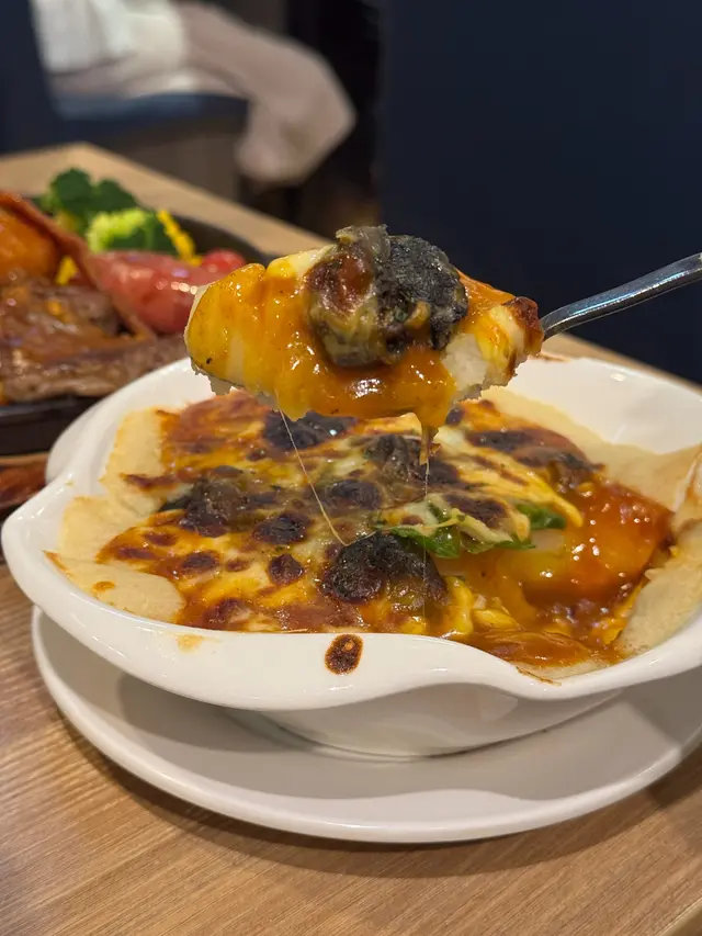 芥末汁清新微辣,蟹棒彈牙鮮甜,汁味層次豐富。雜錦海鮮焗飯熱辣上桌,海鮮新鮮彈牙,芝士拉絲香濃,飯粒裹滿醬汁,每啖都好滿足。