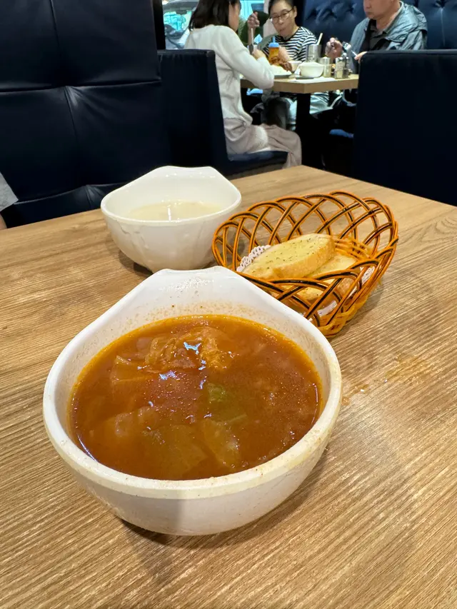 星期二的精選晚餐,超抵食!是日餐湯暖胃濃郁,多士香脆金黃,開胃一流。
