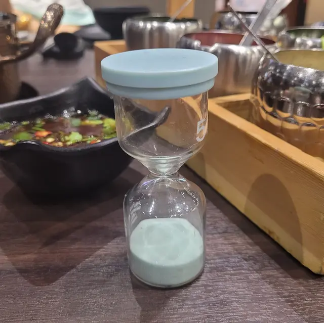 隨著沙漏沙粒一點一點的往下流,泰國椰子雞湯飄散著清香的椰子香,一喝更是滿意。泰國椰子雞湯湯底清徹,清楚看到許多食材,泰國椰子雞湯原汁原味,鮮甜順口,讓平日不太喝火鍋湯的我喝了好幾碗,大人小孩都喜愛,每喝一次雙眼發亮,說很好喝,雞肉軟嫩不油膩。