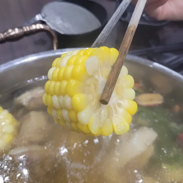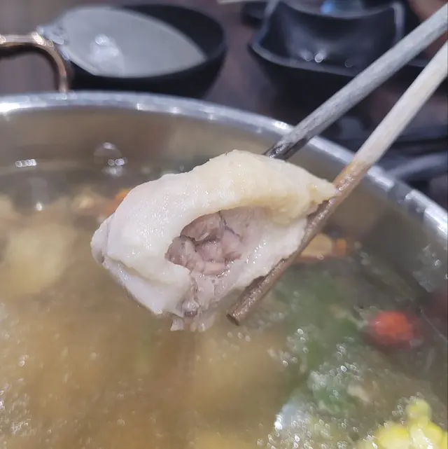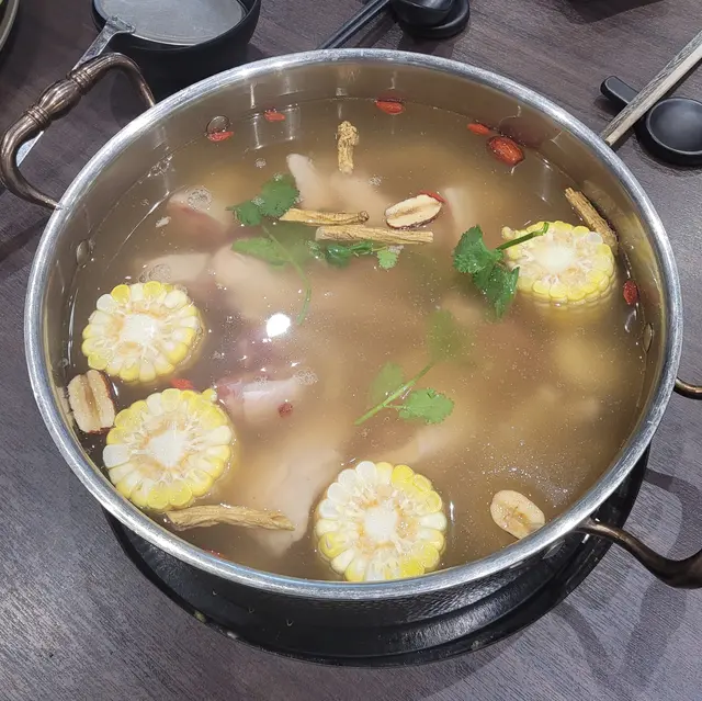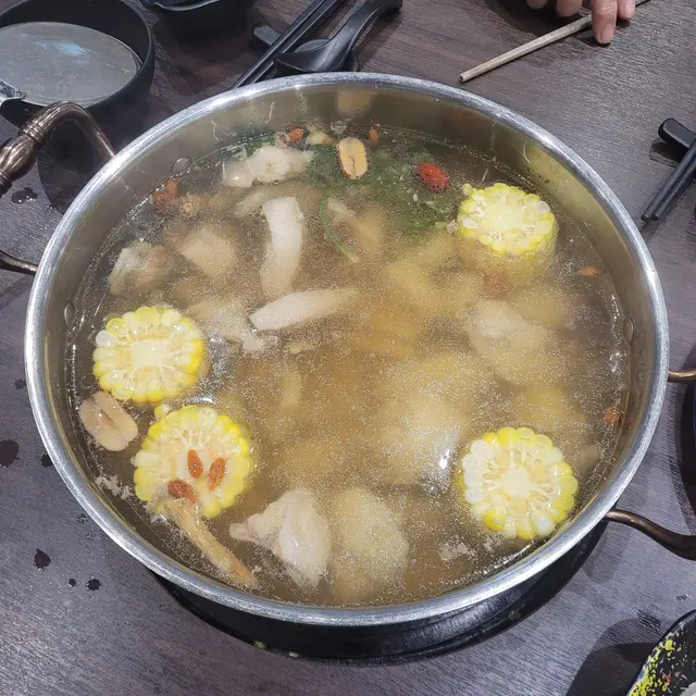 叁淥火鍋的泰國椰子雞湯真材實料,難怪被評為元朗最強的泰國椰子雞湯,不少食客來到叁淥火鍋都必點泰國椰子雞湯。店員先將新鮮雞件放進鍋裡,然後再把即開的椰青水注入雞鍋裡,與粟米、馬蹄、紅棗、杞子、芫荽、北芪等慢慢熬湯,店員把椰肉挖出,可即食或煮湯。