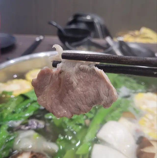 懂吃懂煮的,一定會吃新鮮第一刀,常煮菜的媽媽一見到有新鮮第一刀,直嚷「一定要叫,好嘢嚟,好矜貴架」,直言沒想到叁淥火鍋有供應。我問媽媽甚麼是新鮮第一刀,媽媽答是豬脢頭中的上肉,佔豬身的份量極少,是切豬的第一刀,肉質爽口,用來做豬肉餅一流,老闆聽到媽媽的發言也說媽媽是識貨之人。