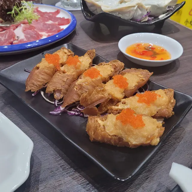 每次來叁淥火鍋,不論是家人或是朋友都要指定點鬼馬雙星,鬼馬雙星簡直是神級小食,油炸鬼鑲入滿滿的蝦膠,剛炸好的鬼馬雙星熱騰騰的,金黃酥香,毫不膩味,蝦膠紮實具彈力,富有濃濃的蝦鮮味,油炸鬼香脆可口,大家吃完鬼馬雙星都會吵著還想再吃呢。