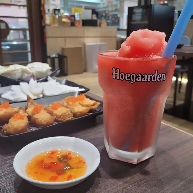 征服萬千小孩的西瓜沙冰需要一點等待時間,因為這裡的沙冰都是現點現打,嬌艷欲滴的西瓜沙冰怎麼拍都美美的,西瓜沙冰清甜滋潤,吃火鍋時喝西瓜沙最適合不過。
