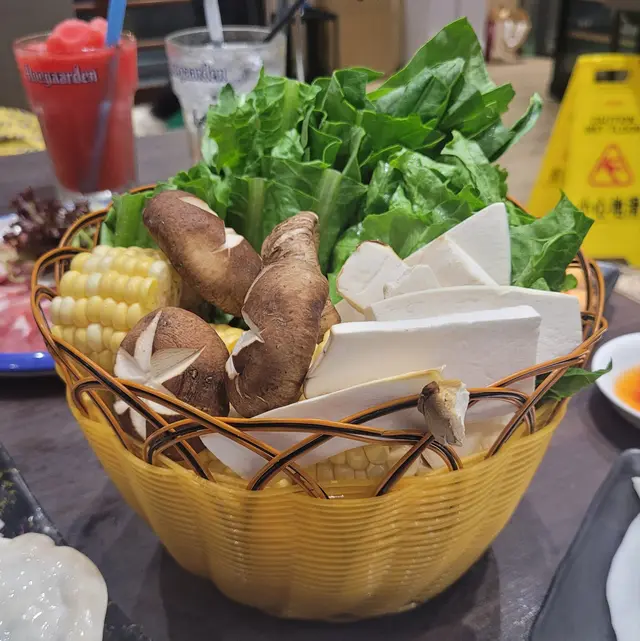 田園菇菜拼盤非常豐富,色彩繽紛,包括多種蔬菜,如粟米、雞脾菇、鮮冬菇、油麥菜、唐生菜,蔬菜均洗得乾乾淨淨,嚐起來蠻清脆爽甜,菇菜和泰國椰子雞湯配合得天衣無縫,品味得到菇菜的清爽與原味。