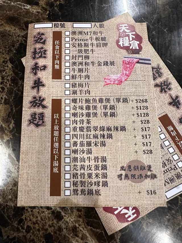 又再嚟多次天下糧倉 buswah321等級42025-12-03 關注 忙碌嘅工作之中,收工後都要食飯嘅 去開旺角 天氣涼涼地又想食火鍋,我哋又去開業多年嘅天下糧倉打邊爐啦 最近又裝修 枱凳同埋電邊爐更新咗 明亮光猛咗 今次仲多咗個羅宋湯湯底 😋 今次就栗米豬骨雙拼。依舊 一黎一大盤可觀份量嘅牛肉 一級肥牛 封門柳澳洲M7和牛 澳洲和牛金錢展 牛板眼腱 安格斯牛肩胛 牛脷片鮮牛肉 每一部份都充滿牛肉嘅味道再配埋出邊嘅自助配料面我最鍾意食嘅芝士丸啲菜都好新鮮添 飲品都係自助 食到最尾當然要食返個甜品啦就有各款雪糕 今次食咗芝麻味同埋豆腐味香濃香濃芝麻 豆腐就清香 。天氣涼啲又再嚟過。天下糧倉牛肉火鍋專門店 (旺角)旺角西洋菜南街1A-1K號百寶利商業中心5樓501-506號舖1以上食評乃用戶個人意見 , 並不代表OpenRice之觀點。讚好分享又再嚟多次天下糧倉 天下糧倉牛肉火鍋專門店 https://s.openrice.com/QrbT0fcylW0檢舉 張貼 評分5味道5環境5服務5衛生5抵食用餐途徑堂食