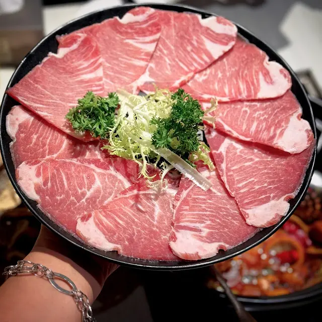 吃罷雞煲後我們點來些生料繼續打邊爐!貼心的大家為我點來極品黑豚肉$188/小,這兒的豚肉非薄切所以吃下口感非常豐富,加上濃濃肉香每次品嚐也是享受。