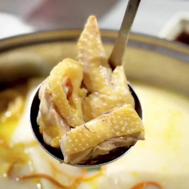 什麼也不用說先來一碗濃香雞湯!然後再慢慢品嚐吸滿雞湯爽滑的野生竹笙和軟滑的養顏花膠,這雞煲絕對是滋補養顏之物呢。