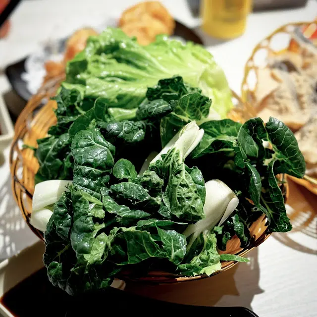 雜菜籃內有生菜、油麥菜及白菜,全部都非常翠綠新鮮度十足。
