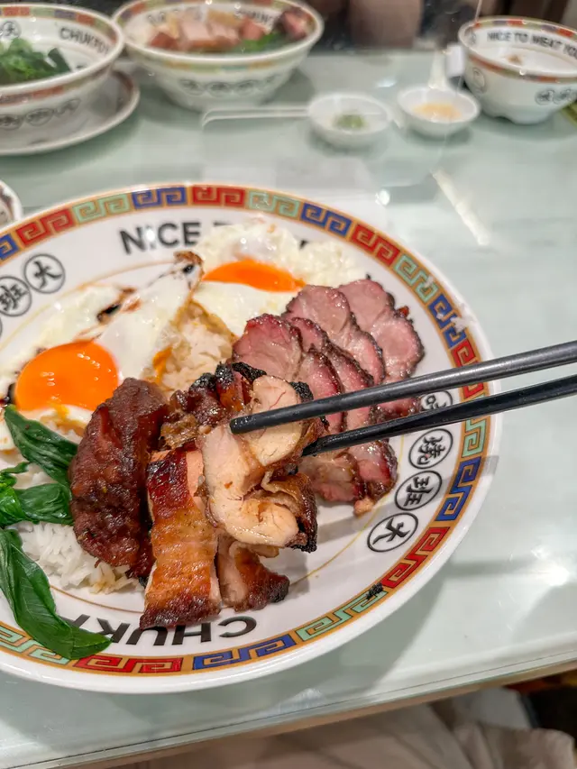 叉燒、冰燒鳳凰燒雞都好食😋 eatislove等級42025-07-22478 瀏覽 關注 大埔區內人氣燒味餐廳,喺大埔廣場地下嘅竺扶大班燒味,喺大埔超級城附近,都幾方便,好多街坊幫襯,lunch Time有機會要等位。叫左黯然銷魂鴛鴦飯,即係半肥瘦叉燒加冰燒鳳凰雞叉燒肥瘦均勻,有少少燶邊,鳳凰雞燒到個皮有啲焦香,而且去骨,食落啖啖肉。仲有煎雙蛋,蛋汁加埋大將燒肉汁特別惹味。冰消防雞可以配搭鳳凰辣汁,由菠蘿、紅黃椒、青檸、蒜蓉等混合而成,味道獨特,帶點酸甜開胃。跟餐仲有例湯送,每日都唔同款式,好足料!如果下午茶時間嚟都仲抵14以上食評乃用戶個人意見 , 並不代表OpenRice之觀點。讚好分享叉燒、冰燒鳳凰燒雞都好食😋 竺扶大班燒味 https://s.openrice.com/QrbT0n9LT00檢舉 張貼 評分4味道4環境4服務4衛生5抵食用餐途徑堂食
