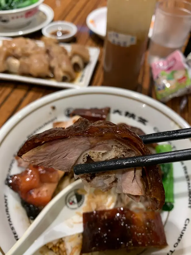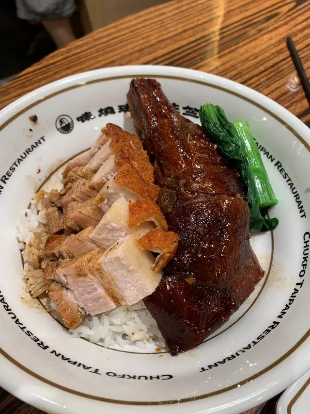 燒鵝燒腩仔雙拼飯 $56,係燒鵝髀呀😍 見佢皮下嘅脂肪應該係被師傅去除左,食落口感就香脆唔油膩,配埋較甜嘅酸梅汁,好味!燒腩仔就肥瘦適中,外皮亦好香脆可口!