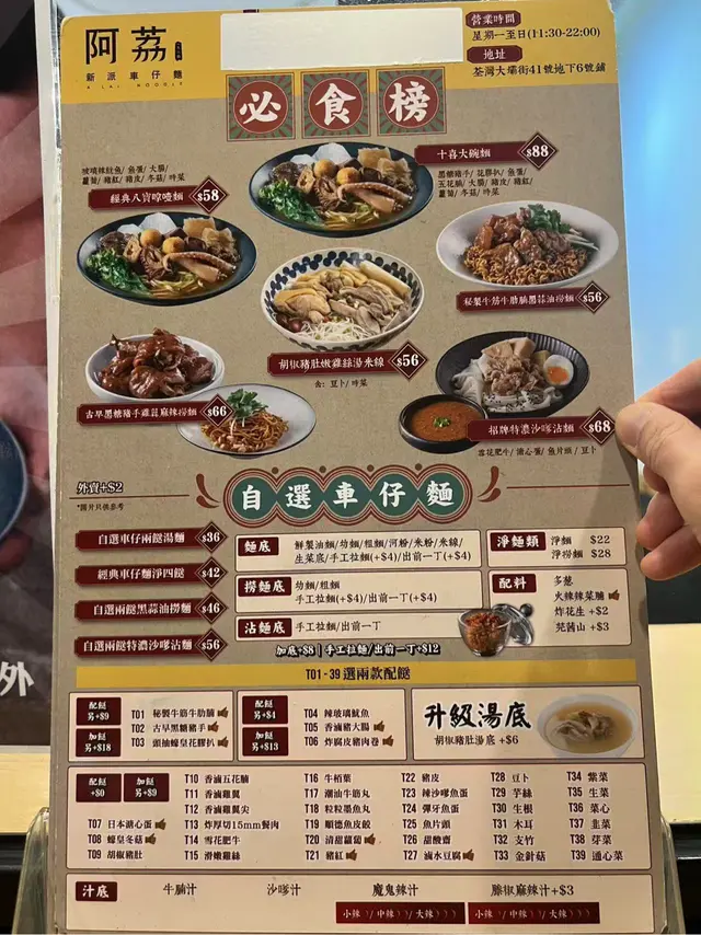 受歡迎的車仔麵檔 elsieccy3504等級42024-12-282K 瀏覽 關注 荃灣餐廳多,多選擇!車仔麵也不例外,荃灣📍阿荔🫶🏻🫶🏻都好受歡迎,今次就嚟試吓先💪🏻[食後感]📝1. 特製牛筋牛肋腩黑蒜油撈麵撈麵的牛筋和牛肋腩煮得非常入味,肉質鮮嫩,配上黑蒜油,增添了獨特的香氣與風味。麵條筋道,吸附了濃郁的湯汁,感受到滿滿的幸福感。2. 黑松露醬炸單骨雞翼炸雞翼外皮酥脆,黑松露醬的獨特香氣讓這道菜瞬間升級。豐富的風味與雞肉的鮮嫩形成完美對比。整體而言,這頓餐點不僅口感豐富,還展現了高級的風味搭配,令人印象深刻!29631以上食評乃用戶個人意見 , 並不代表OpenRice之觀點。讚好分享受歡迎的車仔麵檔 阿荔車仔麵 https://s.openrice.com/QrbT001vP00檢舉 張貼 評分5味道5環境5服務5衛生5抵食用餐途徑堂食