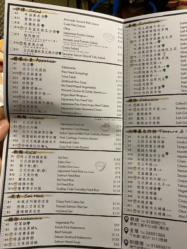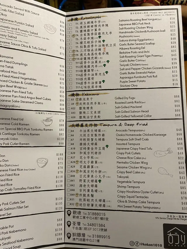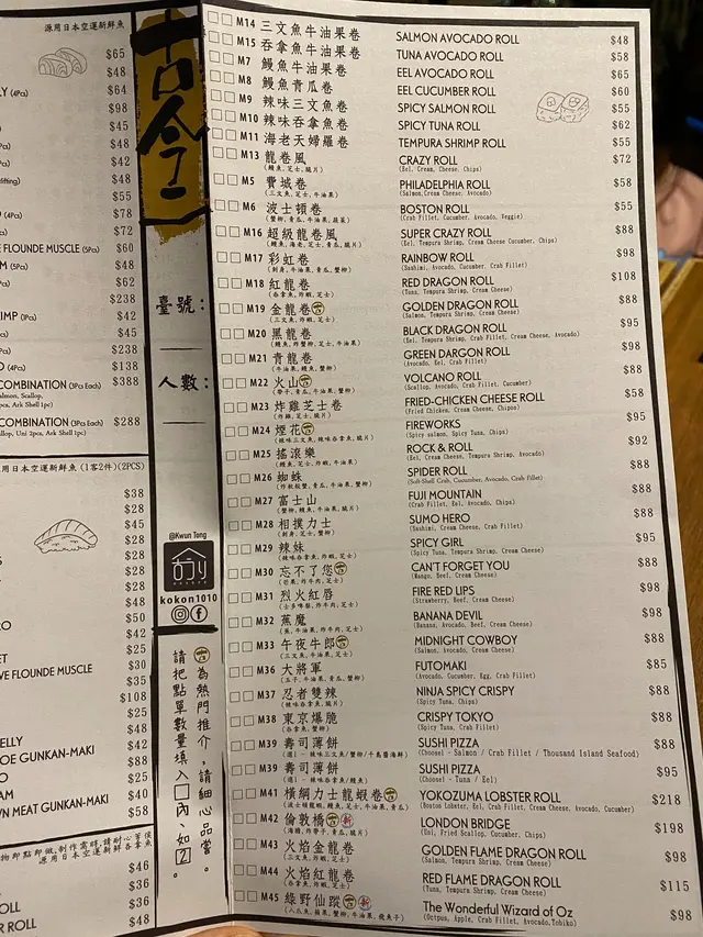 古今二係一間日式居酒屋,主打特色創意卷物,餐牌都有刺身壽司,沙律,前菜小食,飯麵,鍋物,串燒,燒物,天婦羅及炸物,定食等。