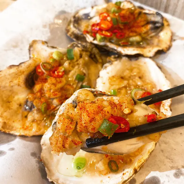▪️8/10▫️<< 海鮮 >> 蒜蓉燒生蠔 $30/3隻 | 鹽燒海蝦 $45/4隻 | 生蠔🦪有驚喜‼️掌心咁大隻 口感滑溜 大量蒜同惹味辣粉🥰 偏油 海蝦🦐燒到連蝦殼都脆口 面層大量椒鹽同辣粉 肉質鮮甜