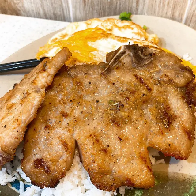 ▪️8/10▫️<< 招牌蔥油豬扒雙蛋飯 >> $56 選用梅頭 大大塊 外皮塗上蜜糖 香茅味重 香口脆邊💯 自製蔥油撈飯 好餸得🍚