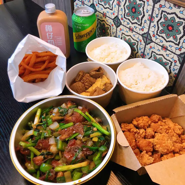 配兩碗白飯,汽水,可+$10轉樽仔奶茶。