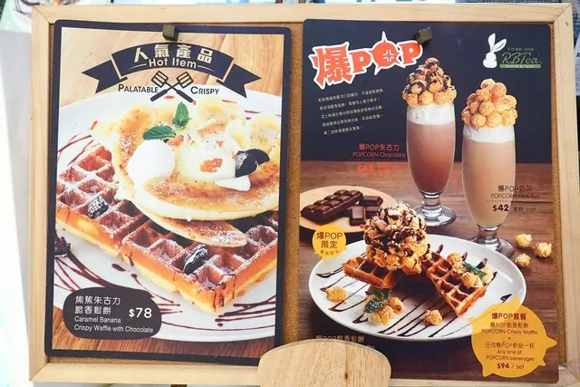 餐廳最近新出左爆POP系列的飲品和鬆餅,小妹都點左杯爆谷奶茶試試。高身杯盛著的奶茶上面了一堆爆谷,將飲管放進奶茶吸入,味道是台式奶茶的味道,不過甜,外還帶點爆谷的味道,頗過癮!