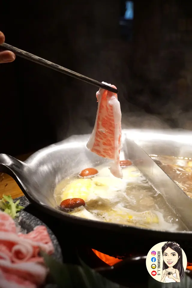色澤粉嫩, 油花豐富, 焯幾秒食, 肉質超嫩, 亦唔會過於油膩。