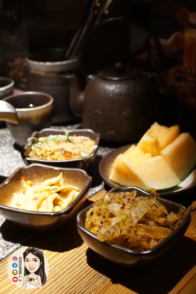 分別有兩款開胃冷盤小食, 有爽脆魚皮絲、鮑魚菇, 無限量供應。 而水果就有西瓜、哈蜜瓜, 清甜多汁。