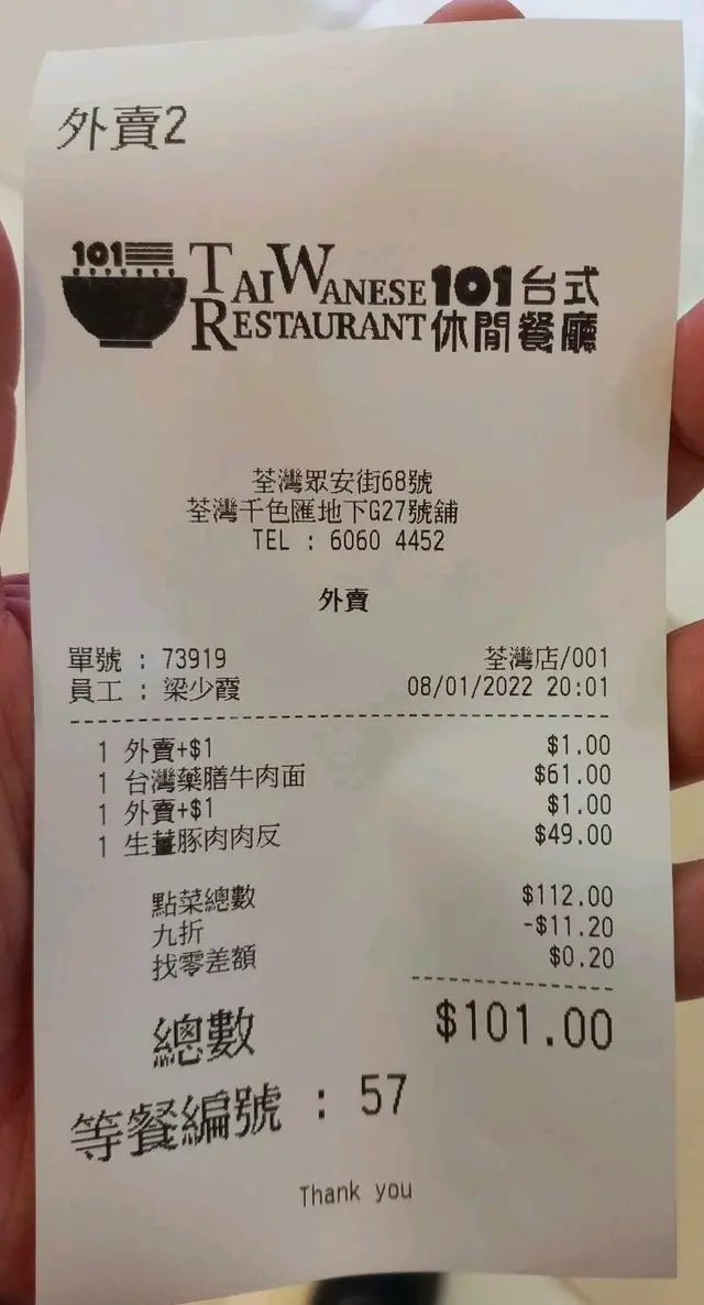 台灣美食 - 101 台式休閒餐廳 siulok42等級32022-01-11244 瀏覽 關注 多得"暫停夜市堂食",只好發掘多些可以外賣的店舖。是晚決定食台灣嘢來慰藉一下不能去旅行的心。店前大大個101燈牌,有否喚回你旅行的回億?望住好多空位都無得坐。。店內d位望落都幾舒服,希望下次有機會試下。台灣藥膳牛肉麵($61/外賣+$1)台灣藥膳牛肉麵$61麵和湯分開上,很好,路途有些遠,本來還怕麵會太淋。台灣藥膳牛肉麵$61湯底香濃有牛肉香味和有小許藥膳味,好味,最後飲晒d湯。生薑豚肉肉燥飯($49/外賣+$1) 生薑豚肉肉燥飯$49和牛肉麵相比之下這個比較遜色,肉燥味道不錯,但汁較小,豚肉肉質太鞋,和肉燥味也不夾,失望。係101買左$101外賣,有趣的巧合。以上食評乃用戶個人意見 , 並不代表OpenRice之觀點。讚好分享台灣美食 - 101 台式休閒餐廳 101台式休閒餐廳 (千色匯) https://s.openrice.com/QrbT0pPv100檢舉 張貼 評分4味道3環境3服務3衛生3抵食推介美食台灣藥膳牛肉麵$61台灣藥膳牛肉麵$61用餐日期2022-01-08用餐途徑外賣自取人均消費$50 (晚餐)