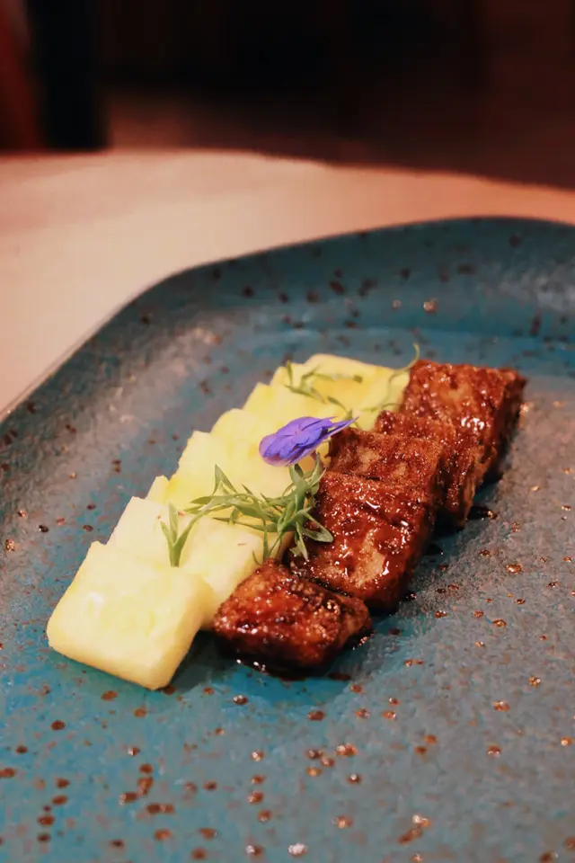 松板肉取自豬頸兩側,算係比較貴價嘅豬肉部位。今次嘅豬肉肉質脂肪分佈均勻,肉質軟腍,掛滿香甜微酸嘅黑醋汁,平衡到豬肉嘅油脂感開。鳳梨亦有解膩效果,兩者酸甜開胃。