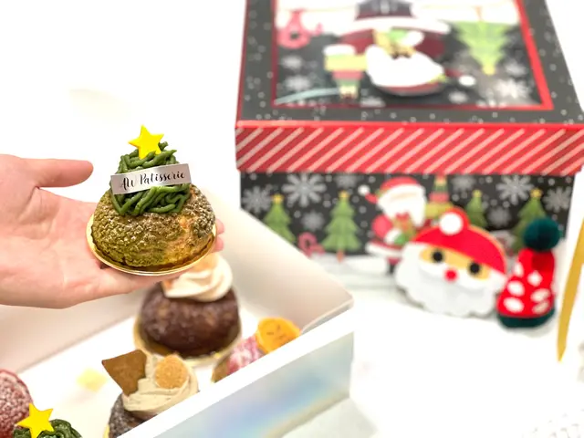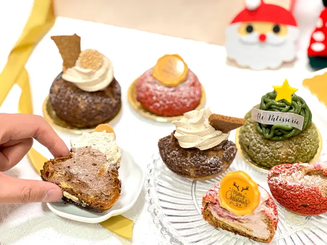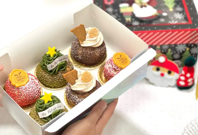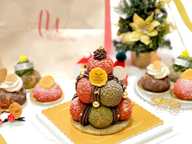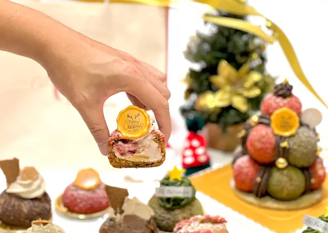 由紅桑子芝士以及比利時黑朱古力兩款泡芙堆砌而成,好似一棵聖誕樹一樣,特別有節日氣氛!小店嘅功夫相當巧妙,造型立體而且不易傾倒(⁎⁍̴̛ᴗ⁍̴̛⁎)