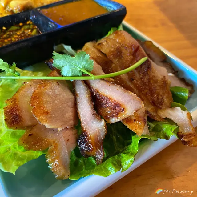 豬牛雞串燒每款兩串,仲有豬頸肉。好欣賞呢個拼盤,每款肉類都係肥瘦適中。豬頸肉好爽口,食到停唔到👍🏼佢跟兩款醬汁,一款係沙嗲入面有花生味,另一款係酸辣汁,兩種都喜歡。美中不足就係肉開始燒到有少少少乾,但味道同份量都令人滿意,依然係非常推介!