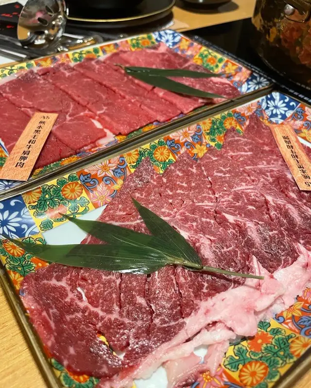 火鍋料,佢有好多唔同部位,㨂咗岩手黑毛牛和尚頭同牛肩胛,都係6秒食得。牛肉味唔錯,仲有墨魚滑、魚肉豆腐,枝竹等。整體來講呢間可以一試,不過要留意用餐時間2小時,稍微唔夠盡興。