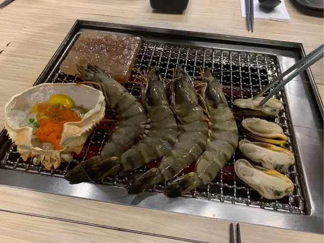 不過,我地都享用到另一個優惠,就係like 熊本燒肉FB page送海鮮拼盤!無諗過送嘅都咁有份量!海鮮拼盤按人頭計份量,入面有鮑魚、青口、扇貝、蠔、虎蝦同一個蟹蓋,海鮮十分新鮮又大隻,真係好抵!店員仲好細心幫我地燒海鮮同話我地知幾時食得,所以最後燒出黎嘅海鮮啱啱好,好食!