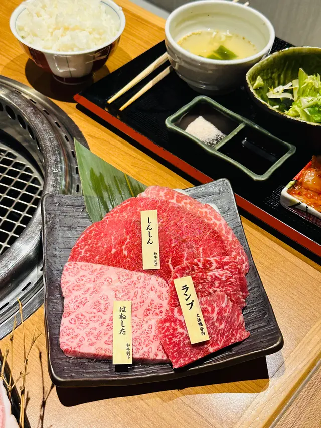 如果想試晒佢既招牌和牛,可以叫呢個招牌定食。食咗三款 (和牛羽下、和牛芯芯、上後腰脊肉) 之後真係大滿足,其中我最鍾意佢嘅和牛羽下 (即係牛肩胛下方、靠近肋骨既稀有部位,又稱翼板肉) 因為最厚切🤤肉身厚實,而且又有大理石油脂花紋😂 送飯一流。