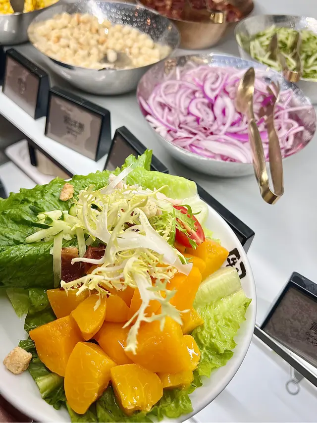 自助區沙律菜配料.米飯.味噌湯.甜品同雪糕