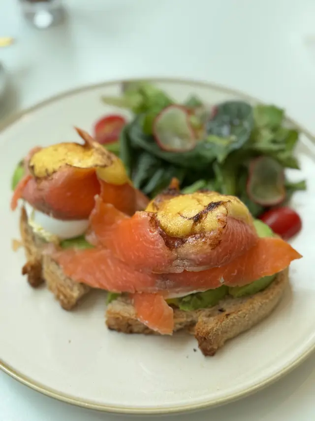 😍煙三文魚與牛油果的搭配,口感豐富,班尼迪克蛋的蛋黃流出,荷蘭醬味道👅酸甜醇厚,英式鬆餅則鬆軟可口,非常適合早午餐。