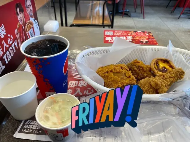 花咗一輪時間同姐姐CONFIRM落單,好驚喜嘅係,以往KFC你預咗要等坐底十分鐘以上。 十年前試過係青衣城真係排足差唔多成個鐘,今次竟然我未比完錢,份餐已出齊。 好開心KFC終於有改善啦。
