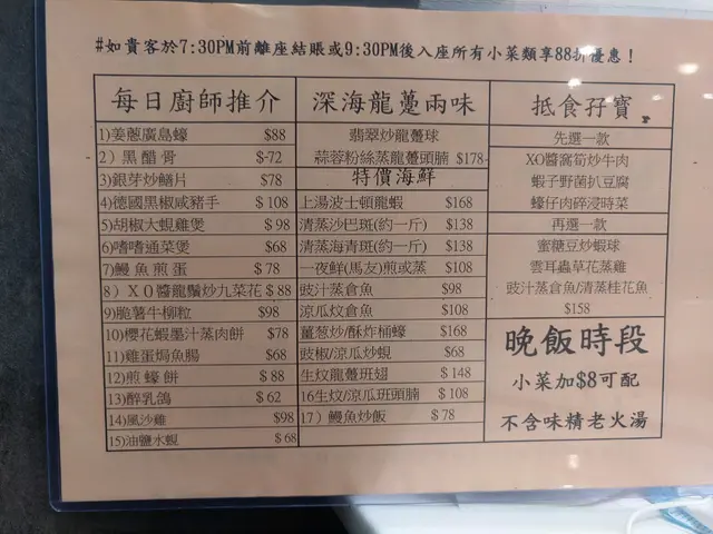 全部都揀晒呢張細餐牌嘅小菜。