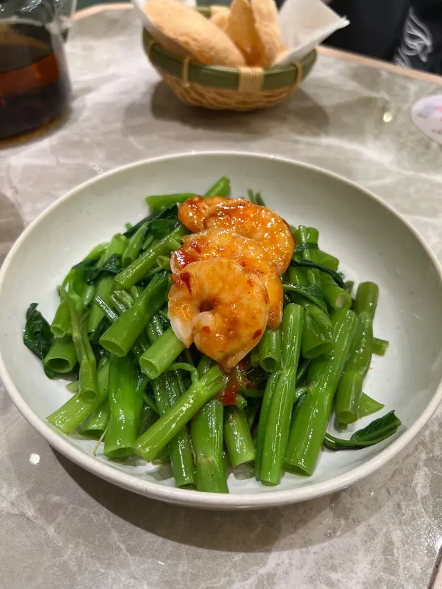 個通菜落左d辣醬炒,加埋三隻蝦仁都唔錯🥬