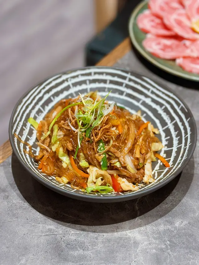 炒粉絲用料十足,除咗蔬菜、紅蘿蔔,仲加咗牛肉條,口感豐富,食到明顯嘅麻油香味