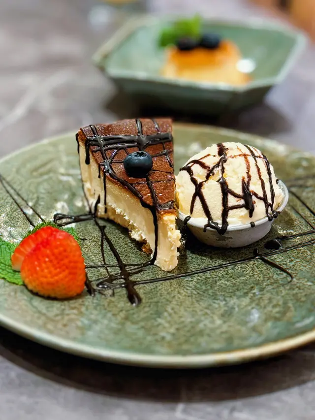 芝士蛋糕口感結實,加埋雲呢拿雪糕食就啱啱好