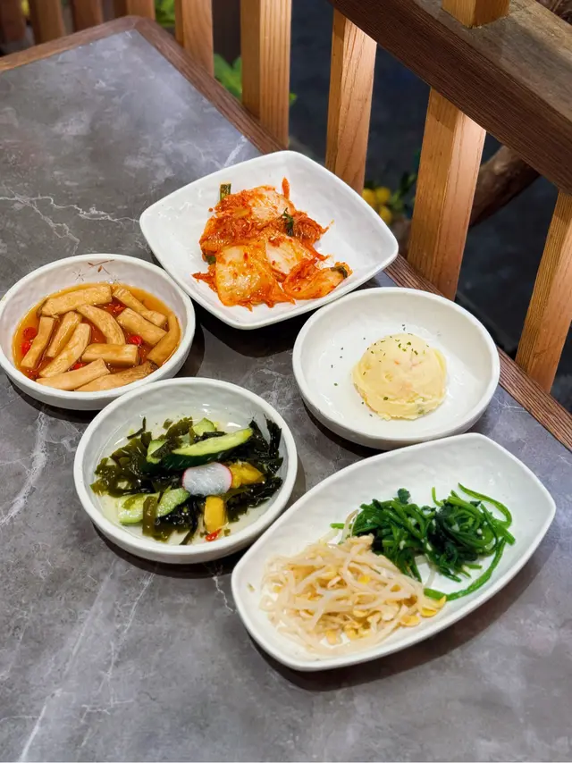 牛舌有四五塊,本身牛舌都比較厚身,所以中間再劃開一刀,方便烤熟,牛舌燒到啱啱好,入口軟淋,加埋泡菜一齊食正好