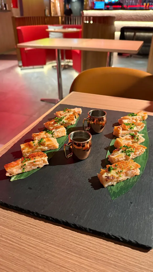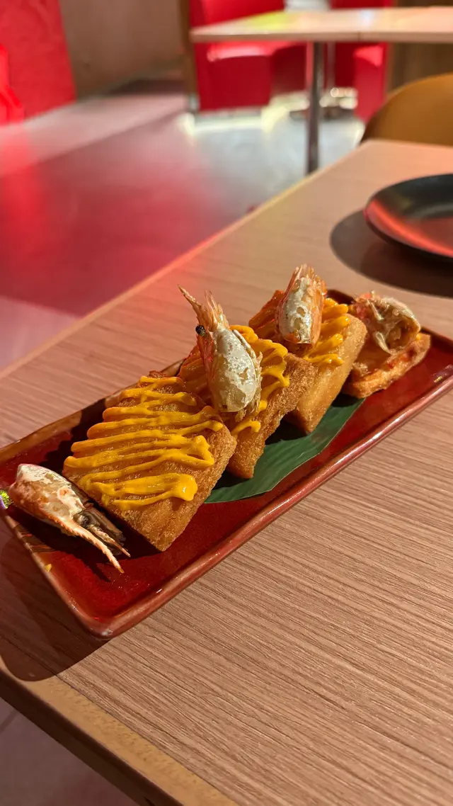 我哋兩個人放縱咗叫咗五道菜,完全無伏!頭盤「冬陰功蝦多事」好有驚喜,將泰式冬陰功醬釀入酥脆多士,酸辣惹味又香口,創意十足!