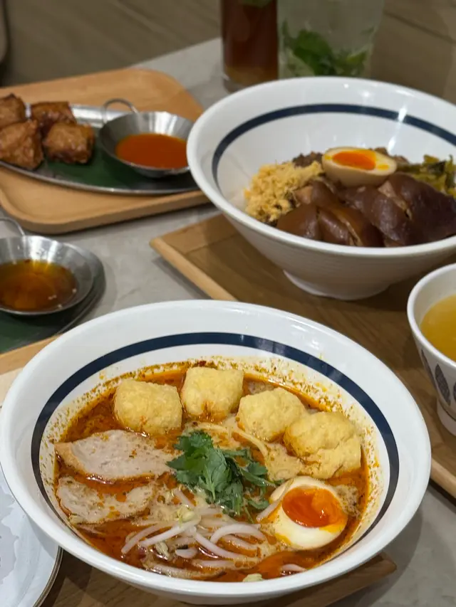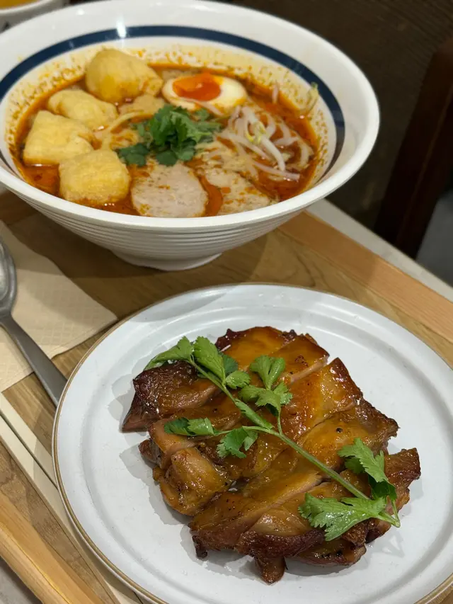 馬來喇沙湯烤雞扒流心蛋摻摻,色澤好吸引,椰香同咖喱味好夾,好濃郁但唔會膩口,微辣收尾好爽口。烤雞扒煎得好香口,外面微微焦香。