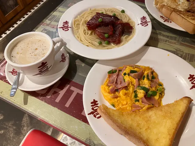 喜喜冰室- 懷舊裝修打卡一流 elmotoro等級42024-12-023K 瀏覽 關注 銅鑼灣早餐選擇不多,去完維園不二之選係《喜喜冰室》,大約$4 x一個餐絕對超值,而且坐得舒服,呢間仲有室外座位,方便煲煙一族。14391🥢早餐B $46⭐️⭐️⭐️(豬扒煎蛋公仔麵+脆香扒多士+熱華田)兩個餐嘅多士都好好味,非一般牛油多士,呢塊似蒜香味,豬扒味道唔錯又夠腍,至於公仔麵就完全唔掂,預咗係大光麵,但煮得唔夠腍兼且湯底無乜味,扣分!🥢囍茶餐 $65⭐️⭐️⭐️(火腿炒蛋+芝士牛油扒多士+叉燒意粉+熱阿華田)1火腿炒蛋加蔥好正,蛋夠香夠滑,牛油多士加芝士好邪惡但勁好味,叉燒又乾又柴好難食,意粉爽口彈牙唔錯,下次睇吓有冇得揀半肥瘦叉先。。。二人共消費:$111以上食評乃用戶個人意見 , 並不代表OpenRice之觀點。讚好分享喜喜冰室- 懷舊裝修打卡一流 喜喜冰室 https://s.openrice.com/QrbT04ODO00檢舉 張貼 評分3味道3環境3服務3衛生3抵食用餐日期2024-11-09用餐途徑堂食人均消費$56 (早餐)