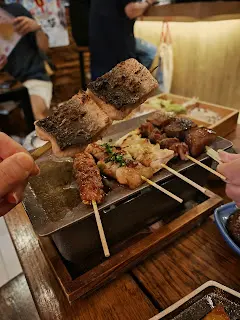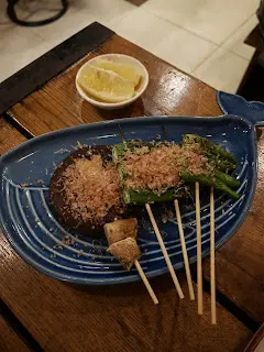 要求餐廳建議串燒食品,來了一個擺设漂亮的拼盤,見到已經垂涎三尺。