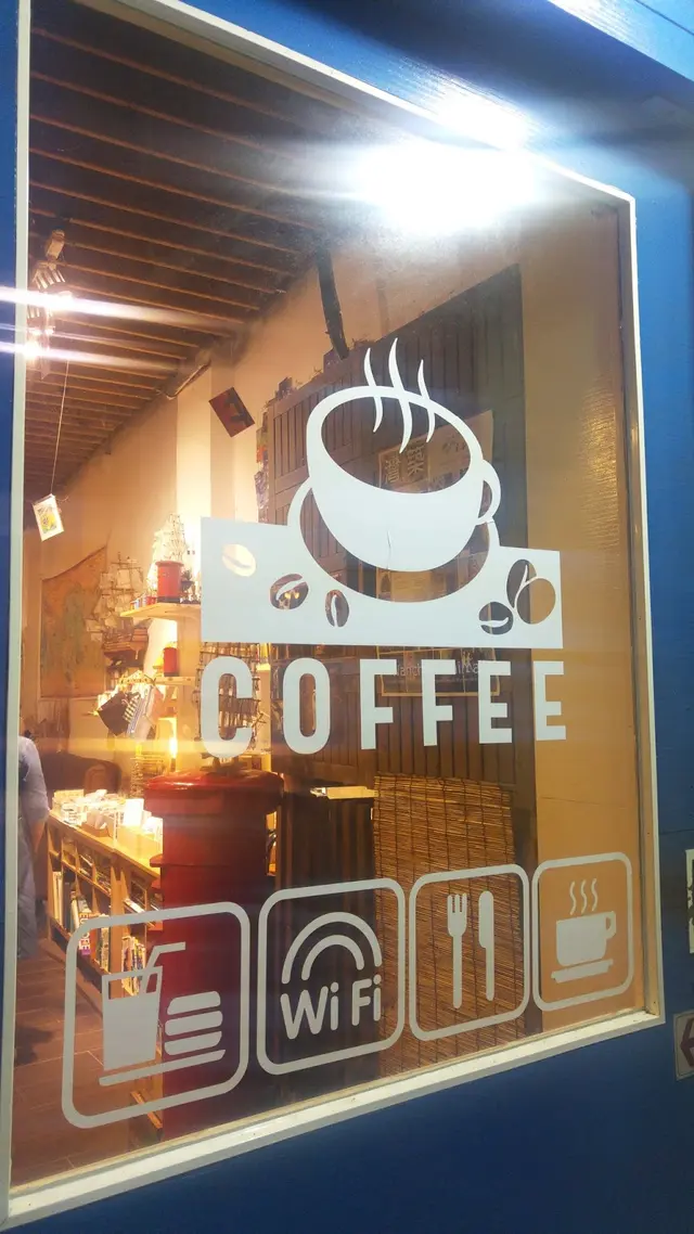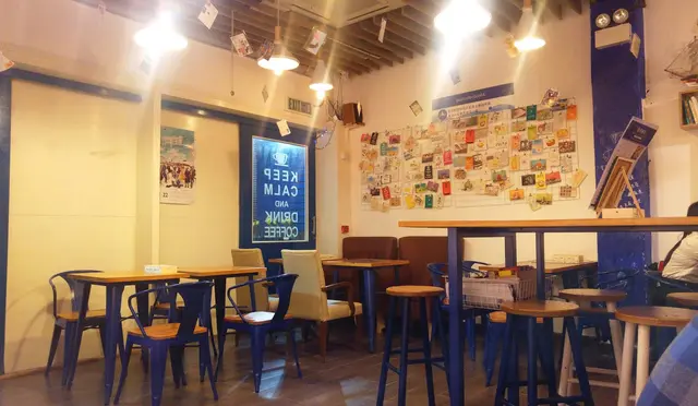雖然cafe位處後巷, 門前放有郵筒、 小艇, 裝飾得甚有氣氛, 而且內裡佔地寬闊, 樓底也甚高, 餐廳一角售賣各式各樣的明信片, 旅遊書藉等, 牆上和天花也掛滿postcard作裝飾。