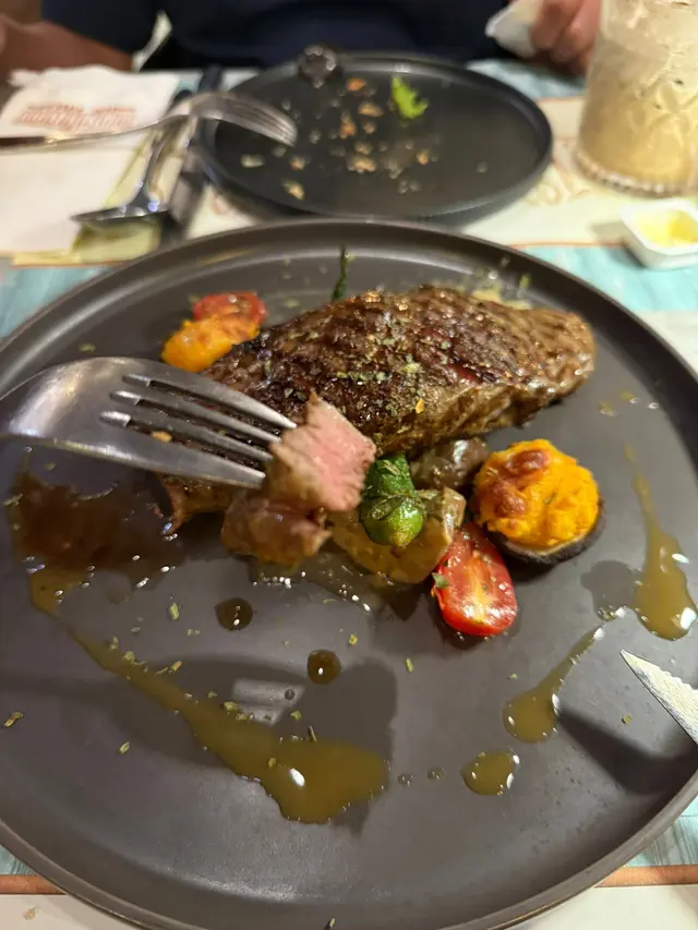 跟住係「8oz美國頂級西冷」,牛魔王見到實雙眼發光!叫咗五成熟,切開見到啲肉汁鎖到實一實,橫切面係靚仔嘅粉紅色。外層煎得香口,有輕輕嘅焦脆感,入口牛味濃到化唔開,肉質又夠淋,簡單蘸啲海鹽已經無得頂!