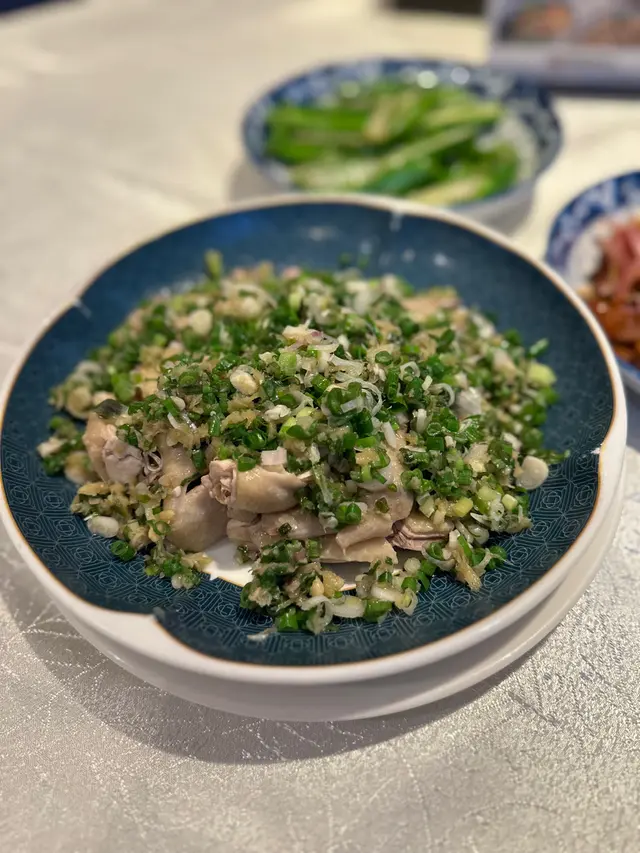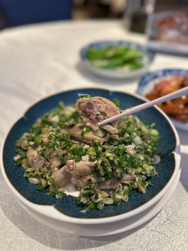 雞肉質地是亮點。選用走地雞,肉質確實比一般冰鮮雞更為緊實有彈性,皮爽肉滑。大量的蔥段鋪面,淋上熱騰騰的香蔥油,香氣四溢。